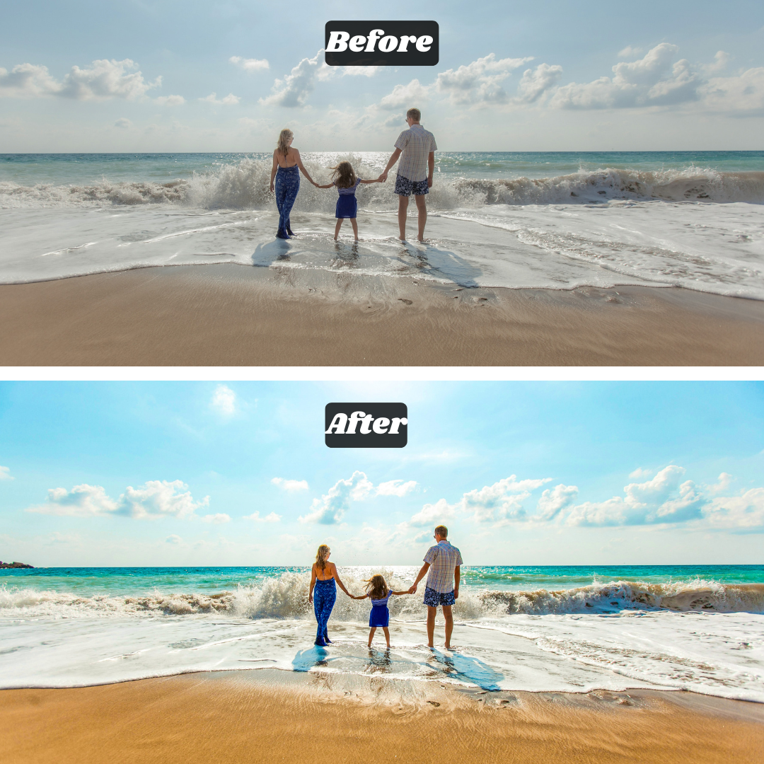 We take your photos and transform them into clean, natural, professional-quality edits ready to print, post, or share. Whether it’s smoothing skin, fixing lighting, or enhancing details, our edits make your memories look their absolute best. Delivered in 24–48 hours.